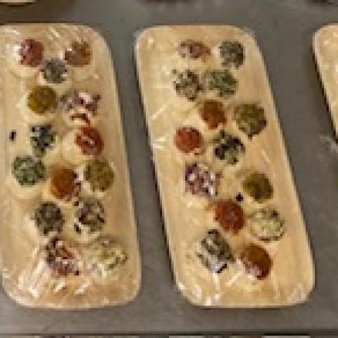 Rigotte au lait entier cru de vache fraiches arômatisées Graines de Pavot/Curry et Poivron Tomates olives